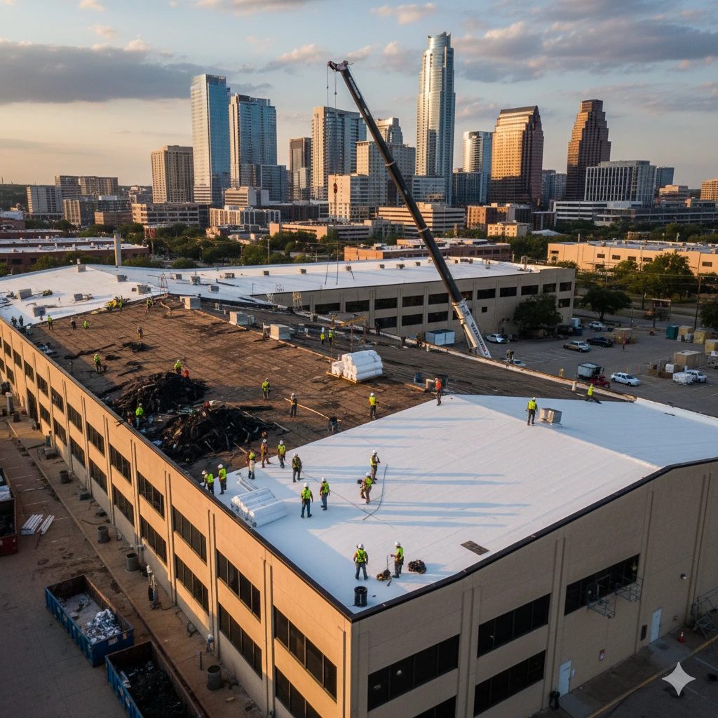 We utilize only top-tier commercial-grade roofing materials, including TPO, PVC, Modified Bitumen, and Metal systems. Combined with our unmatched craftsmanship, this guarantees a durable, energy-efficient, and long-lasting new roof specifically engineered for Central Texas.