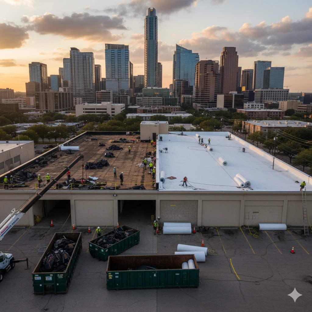 Renewing Your Flat Roof with Precision TPO, PVC, and Modified Bitumen Systems. Enhancing Durability, Energy Efficiency, and Value for Austin's Commercial Properties.
