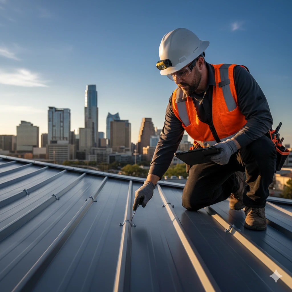 Your metal roof is a significant asset—ensure its continuous peak performance. As a six-generation, family-owned Austin contractor, we are singularly focused on specialized commercial, industrial, and institutional roofing. For expert Commercial Metal Roof Maintenance Austin that meticulously protects against unique challenges, choose the local authority with a legacy of trust and commitment. Preserve your investment with unparalleled care. Get your free estimate today.
